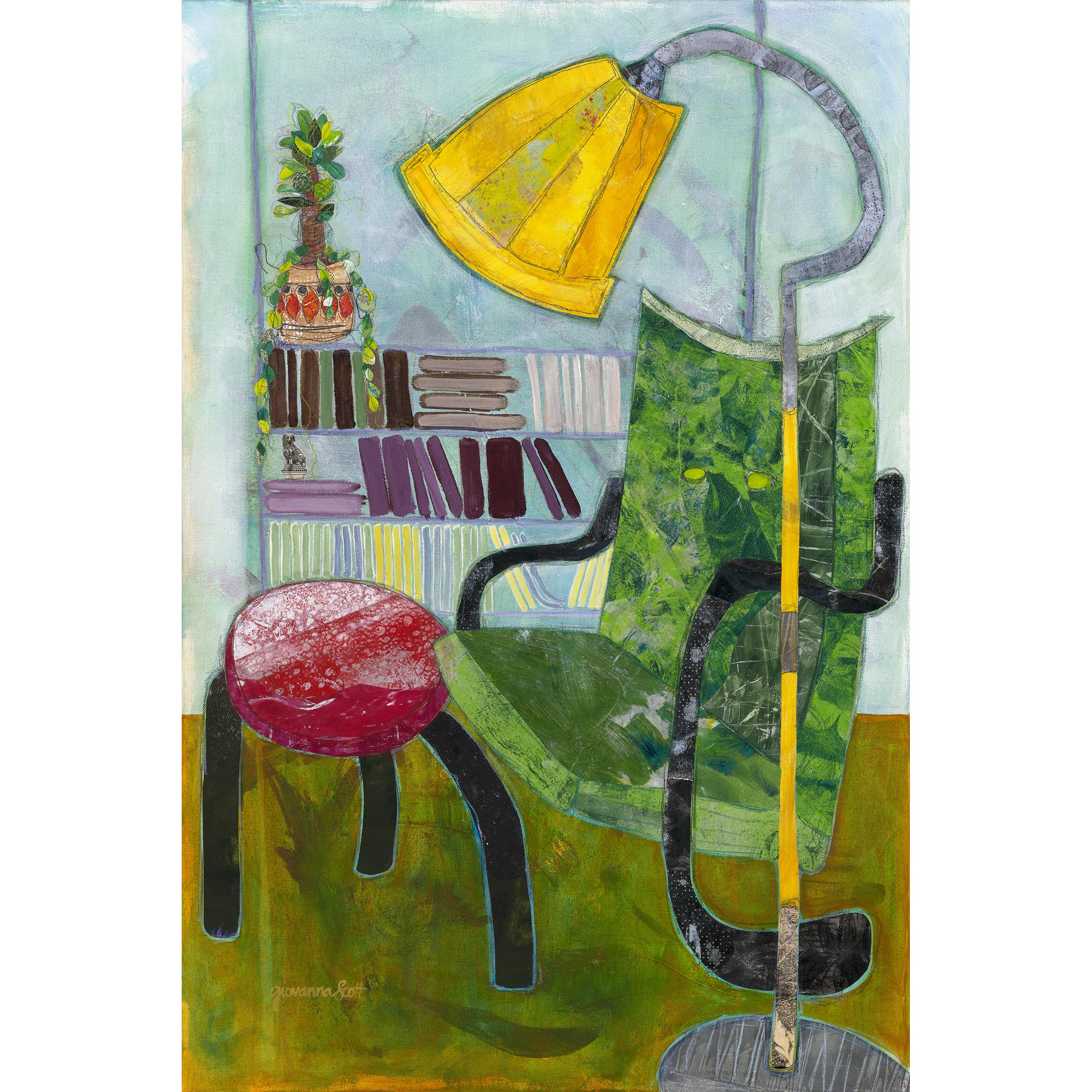 Painted paper collage, acrylic, machine stitching and pencil on canvas. 60x90cm SOLD
