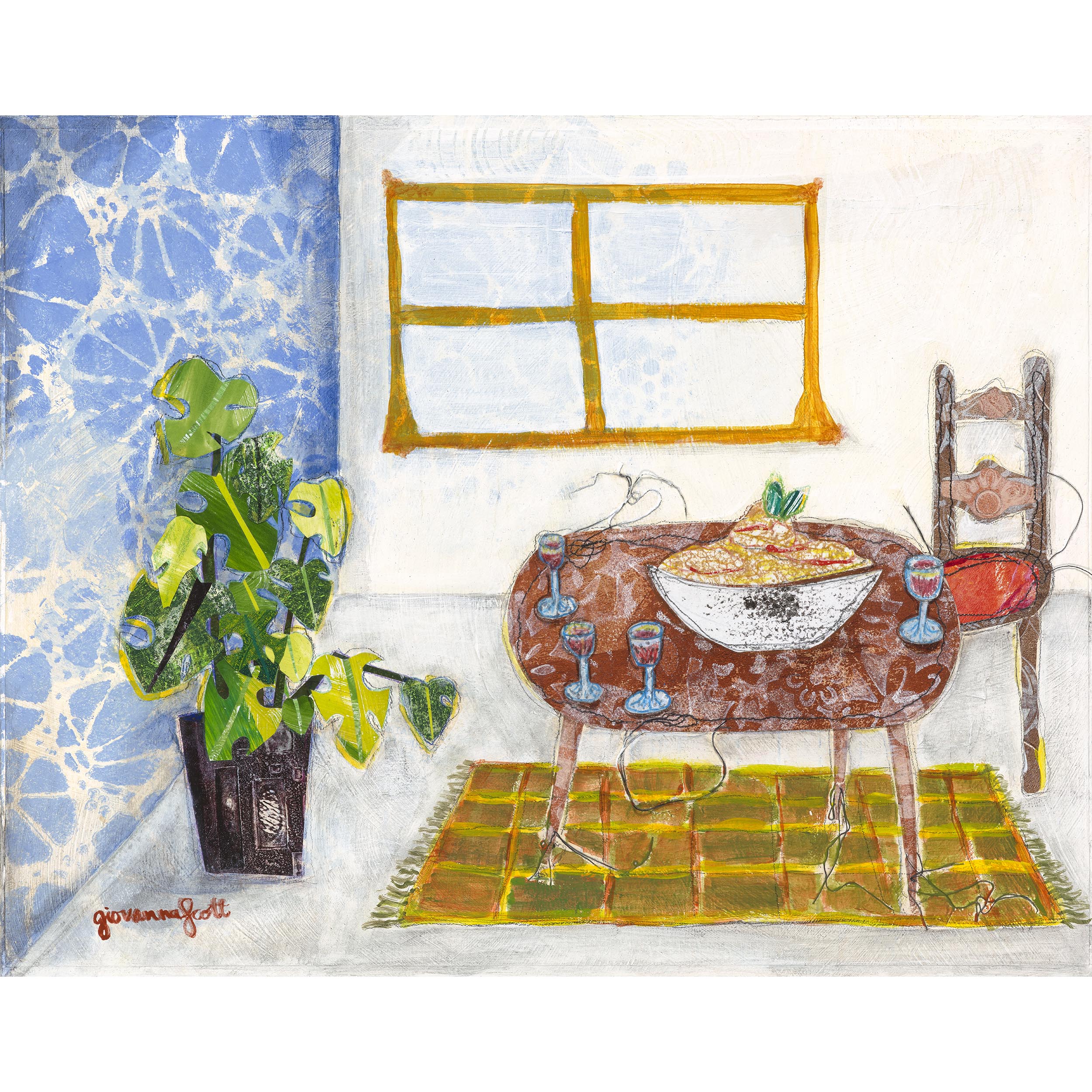 Painted paper collage, acrylic, and pencil on board. 30x30cm