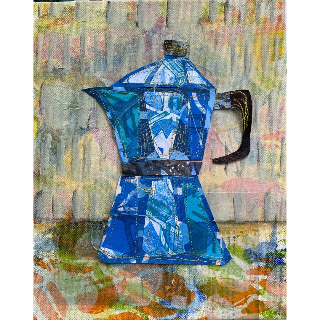 Painted paper collage, acrylic, machine stitching and pencil on canvas. 20x25cm SOLD