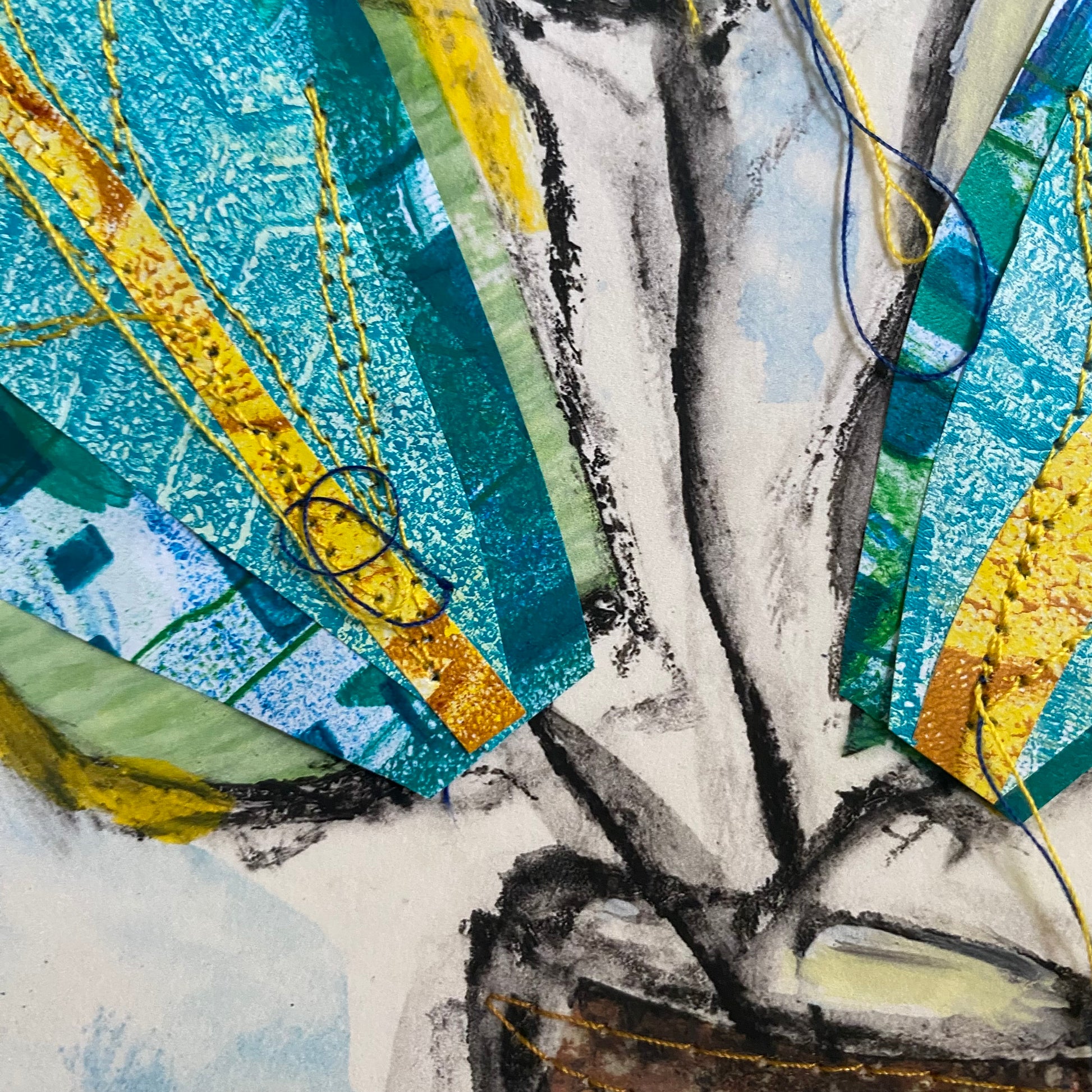 A limited-edition StitchPrint, hand-finished with collage and thread for a one-of-a-kind look.